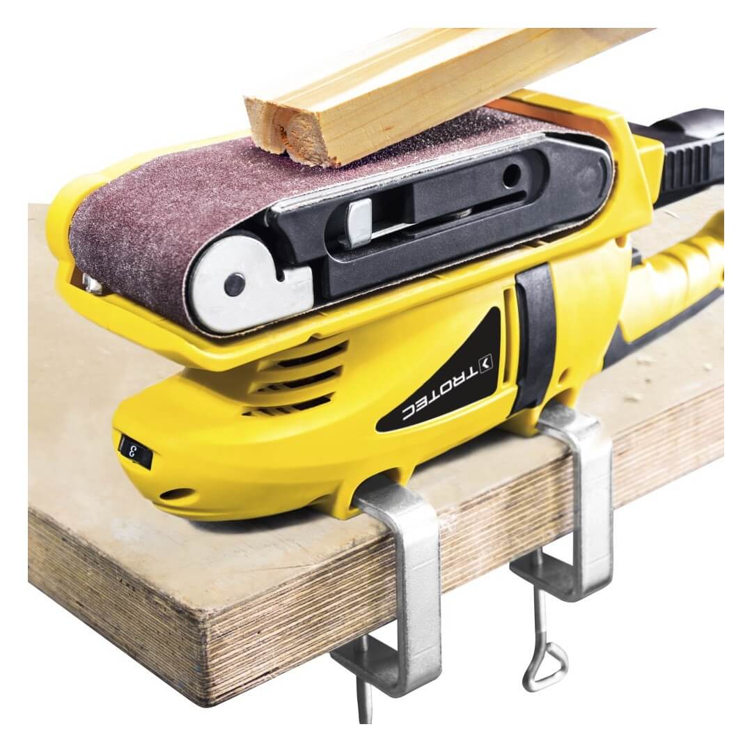 Slípivélin er mjög hentug til að brýna, slétta, þrífa og ryðhreinsa plast, við, málm og stál. Auðvelt er að skipta um slípibeltið vegna verkfæralausa klemmukerfisins