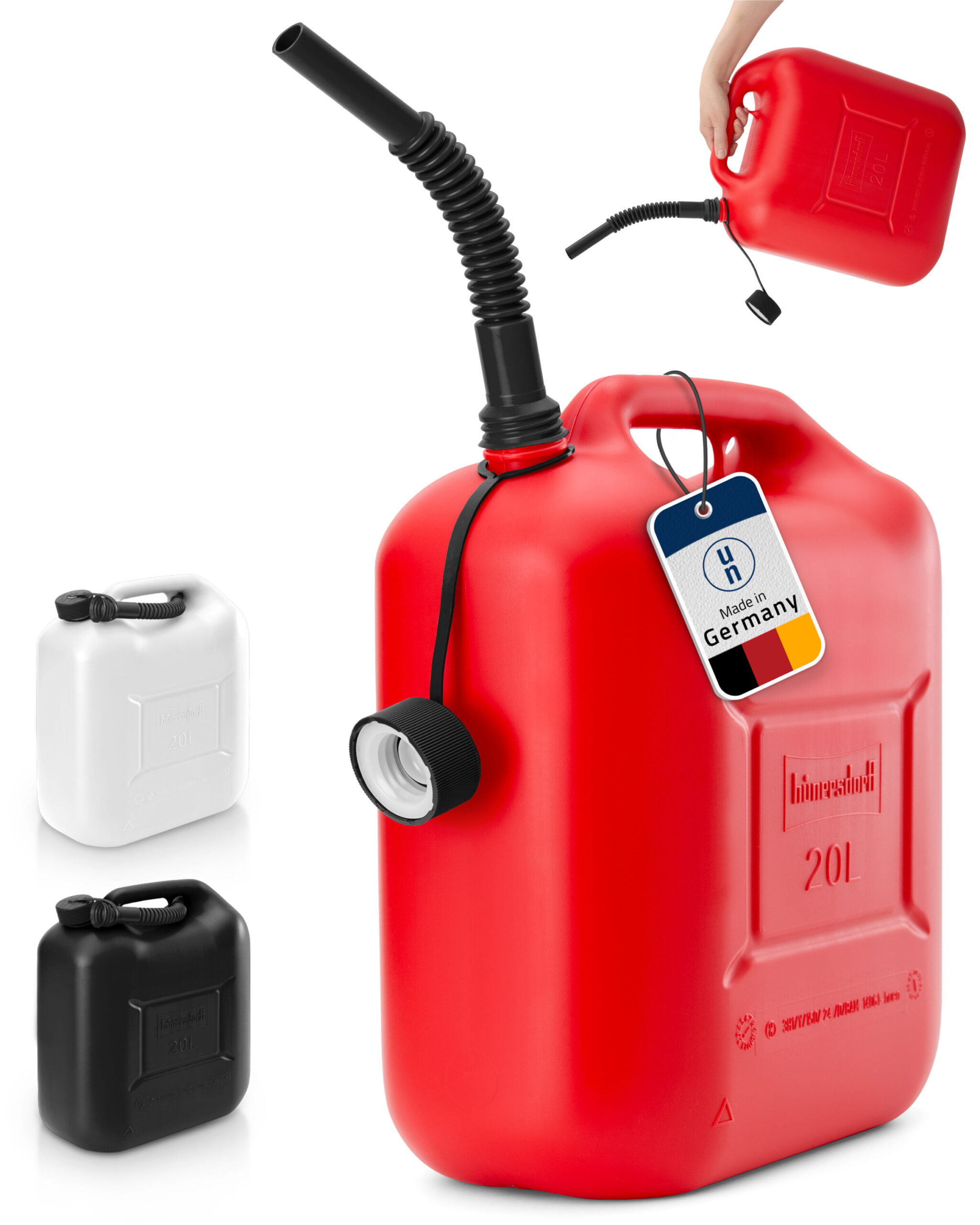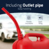 Stútur fylgir sem auðveldar að hella bensíni úr brúsanum.