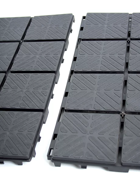 Úti plastflísar sem henta á mörgum gólfsvæðum s.s. svalir, sólpalla, verandir, sundlauga- og pottasvæði, búningsklefa eða með í útileguna. o.m.fl.