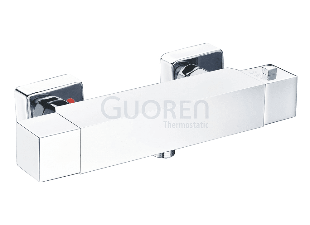 Fallegt ferkantað krómað Guoren hitasrýrt sturtutæki með niðurstút