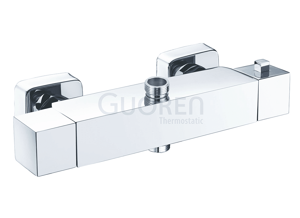 Fallegt ferkantað krómað Guoren hitasrýrt sturtutæki með upp- og niðurstút