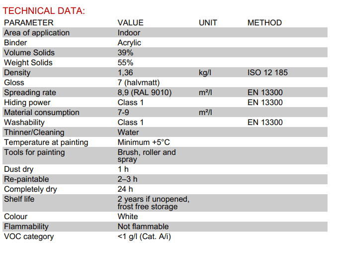 Colorex Vagans Pro+ 7 innimálning hentar vel á steypta og pússaða fleti, gifs og spónarplötur og til yfirmálunar á áður málaða fleti.