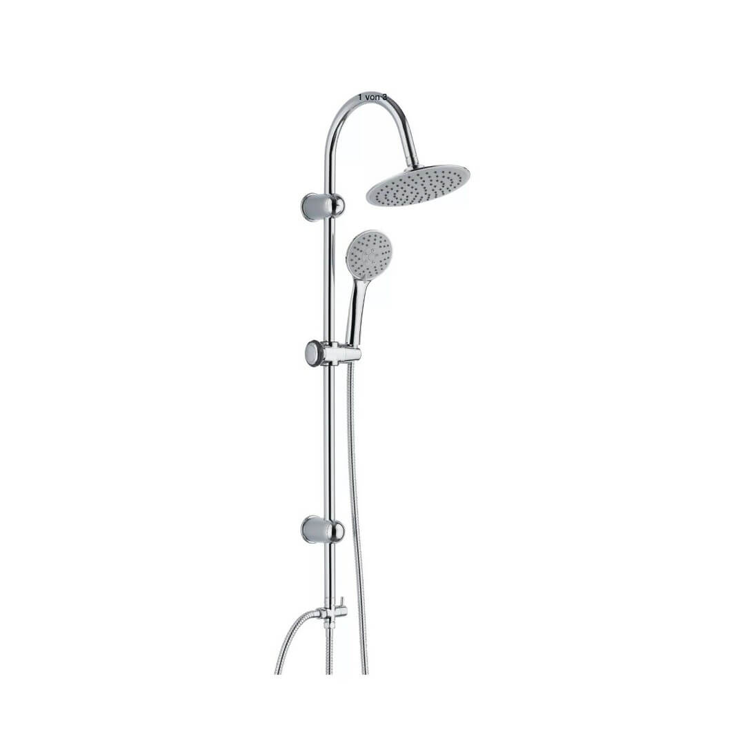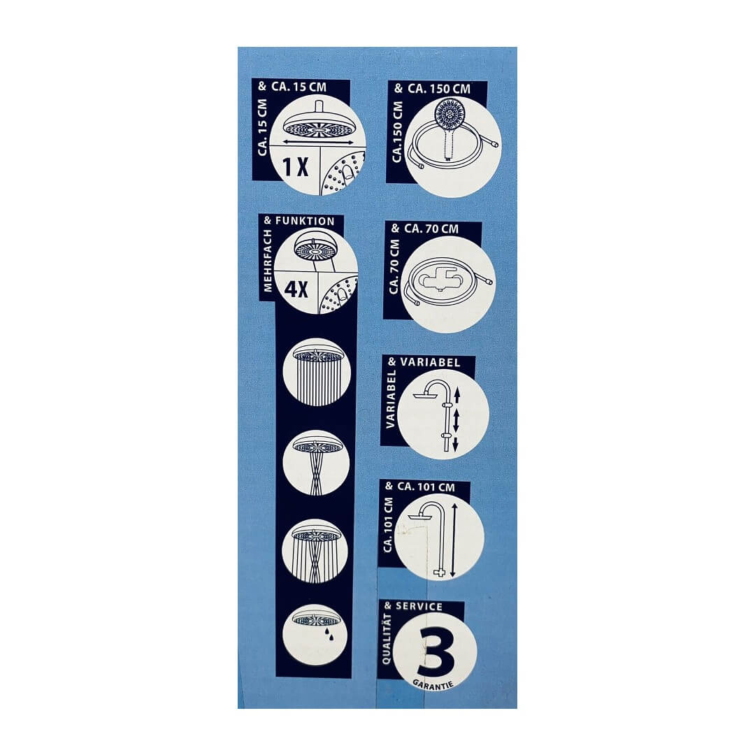 Sturtusett frá Schutte sem inniheldur stöng, brúsu, handsturtu með barka og vegghengda sturtustöng