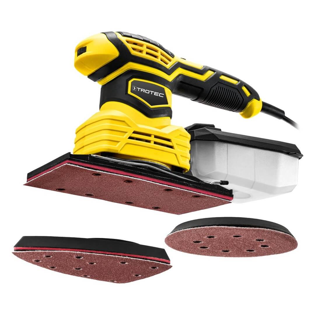 Juðarinn er fjölnota og því hefur þú rétta slípivél fyrir allar aðstæður þökk sé þremur breytanlegum slípispöðum sem auðvelt er að skipta á milli (Delta- ferhyrndur og hringlaga)