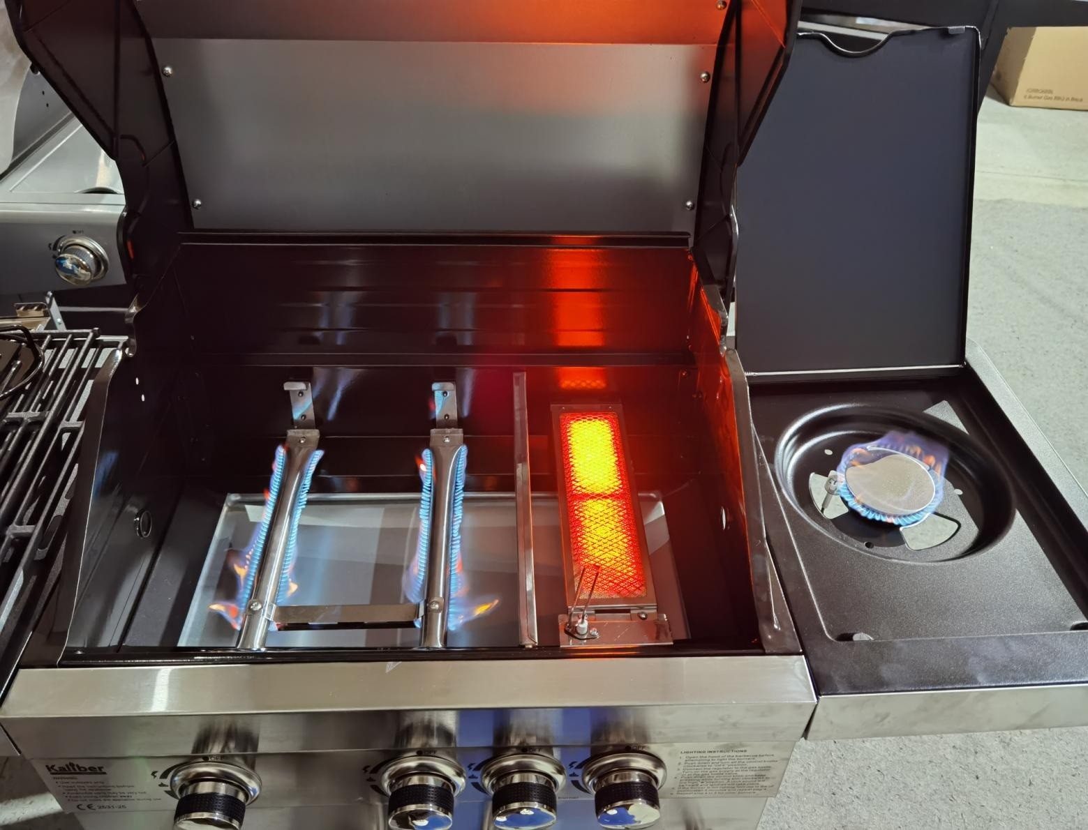 Kaliber Silver III brennara gasgrillið er 6kW + 4kW sizzle zone + 2,5kW með þykkum og góðum grillgrindum úr pottstáli.