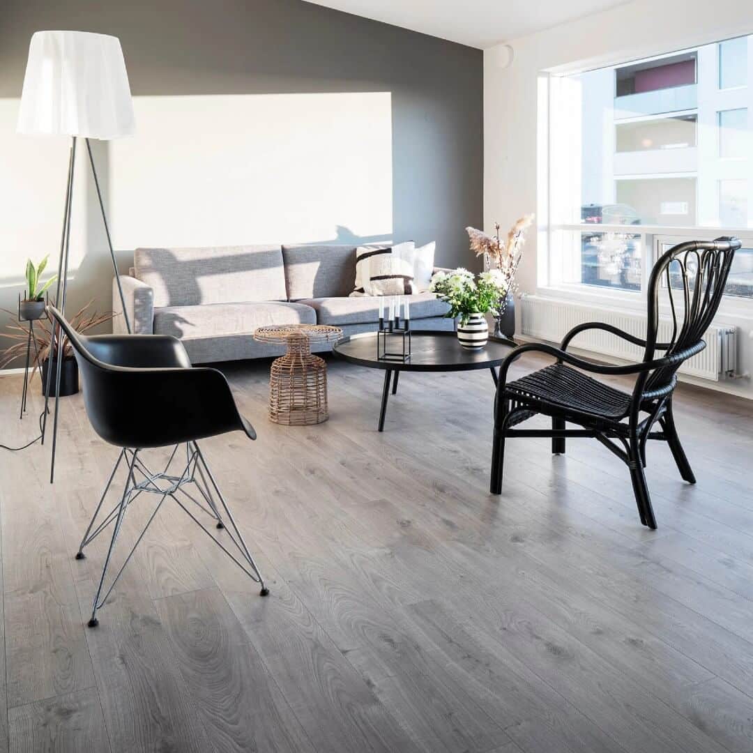 Harðparketið er 12mm þykkt. Fjalirnar eru 184,5 x 18,8cm á stærð, bandsöguð áferð (í hverjum pakka eru 4 fjalir). Harðparketið hefur flokkunina AC5.