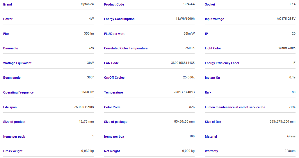 LED gyllt pera 4W (30W) með hlýjum hvítum lit (Warm white)