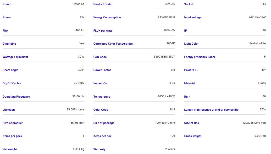 Led kertapera Dimmanleg 4W (32W) E14 4000K
