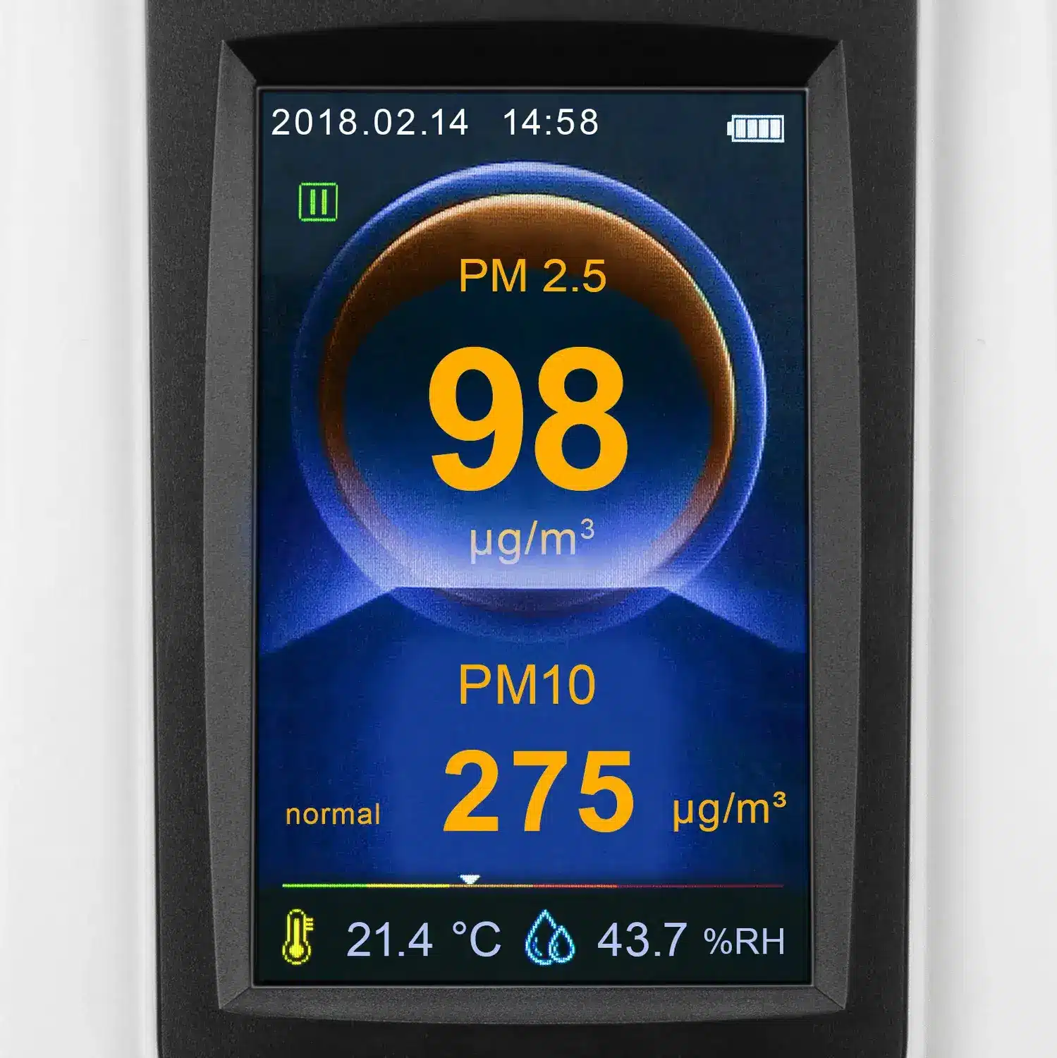 Loftgæðamælirinn mælir PM10 og PM2,5 agnir í umhverfinu og Co2 losun í lofti á nákvæman hátt. Inniheldur klukku, raka- og hitamæli