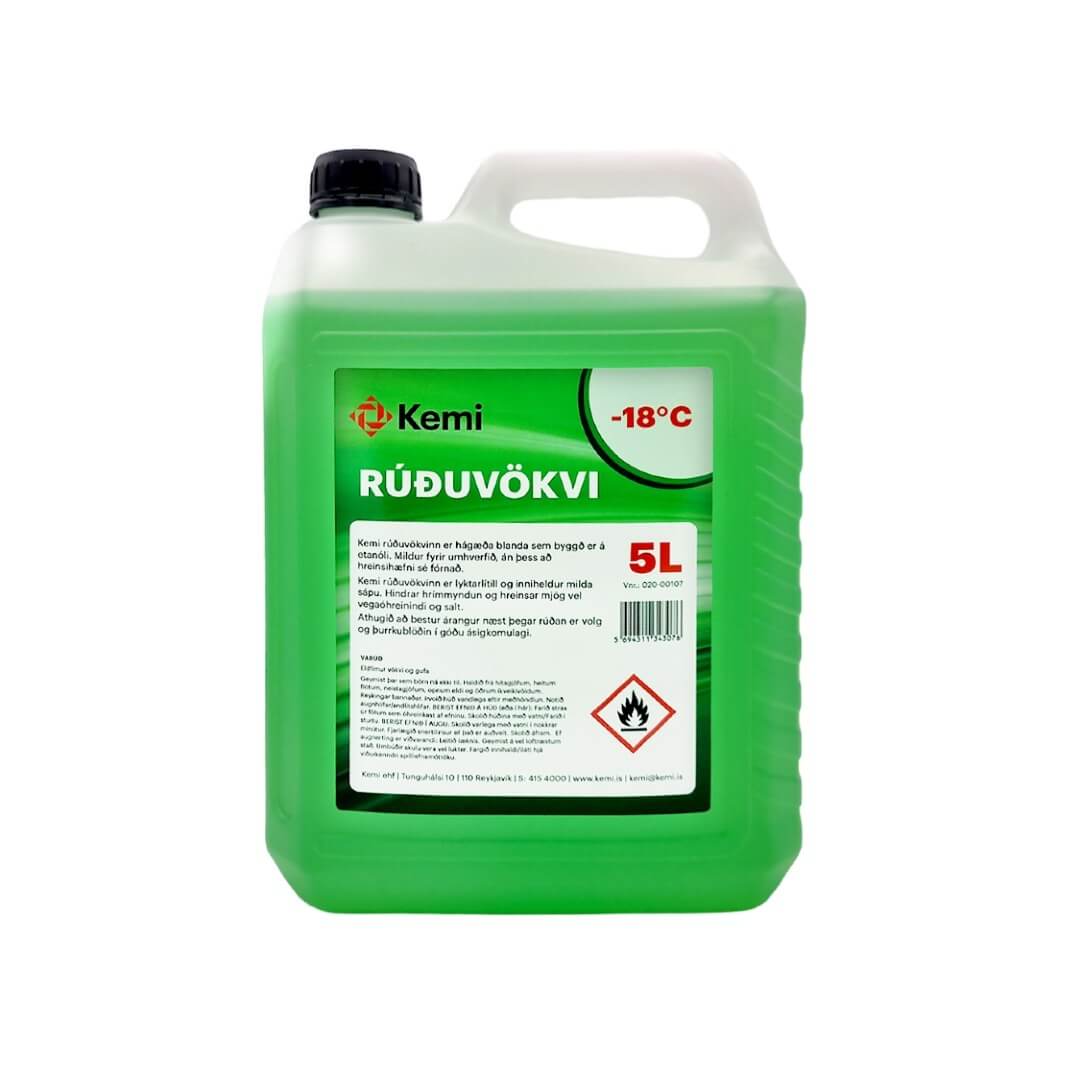 Kemi rúðuvökvinn er hágæða blanda sem byggð er á etanóli. Mild fyrir umhverfið án þess að hreinsihæfni sé fórnað. Rúðuvökvinn er nánst lyktarlaus og er með frostþol upp á -18°C. Engum skaðlegum efnum eða ilmefnum er bætt í Kemi rúðurvökvann. Hindrar hrímmyndun og hreinsar vegaóhreinindi og salt án strikamyndunar. Kemi rúðuvökvinn er mildur á gúmmí í rúðuþurrkublöðum sem og á gúmmí og plastkanta.
