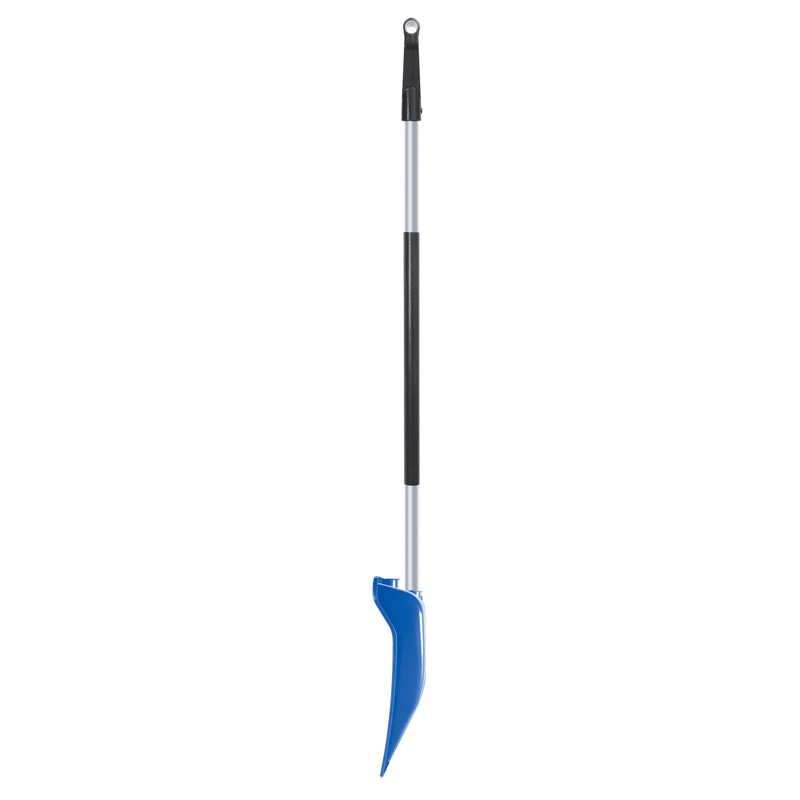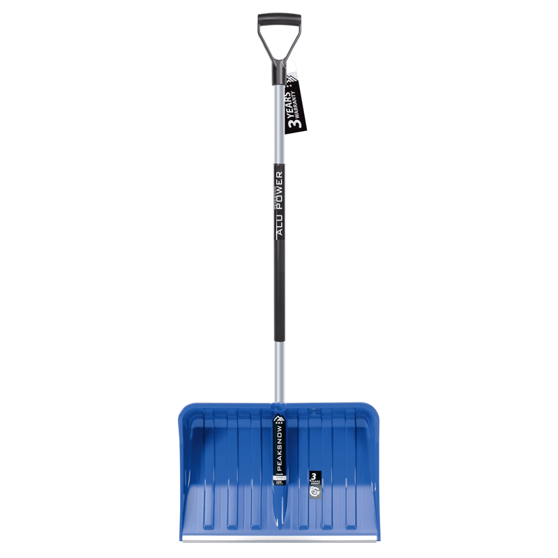 Þessi snjóskófla er með blað úr plasti. Fremst á blaðinu er ál sem gerir skófluna sterkari.
