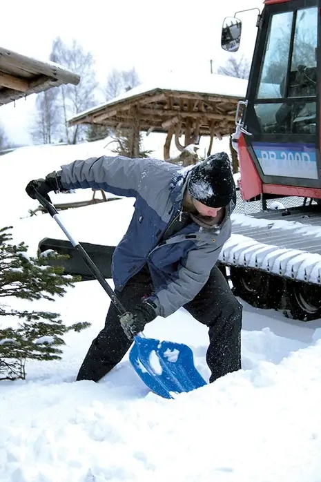 Góð snjóskófla með breiðu plast blaði