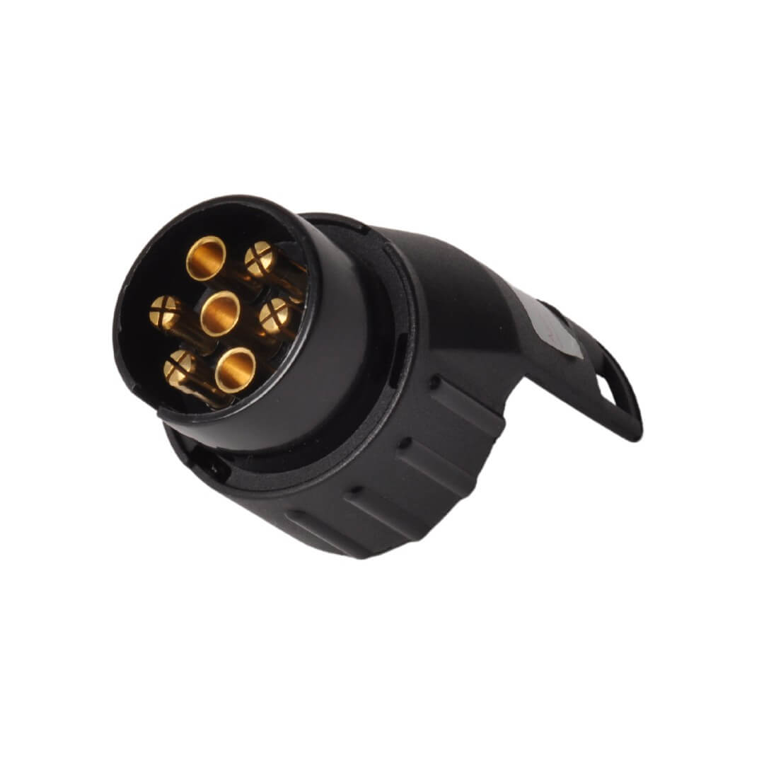 Með þessu breytistykki er hægt að tengja 13 pinna tengi í á tjaldvagni, kerru o.fl í 7 pinna tengi í bíl