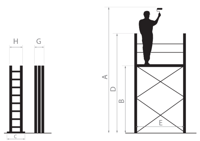 Hæsta þrep á vinnupalli (B): 273cm