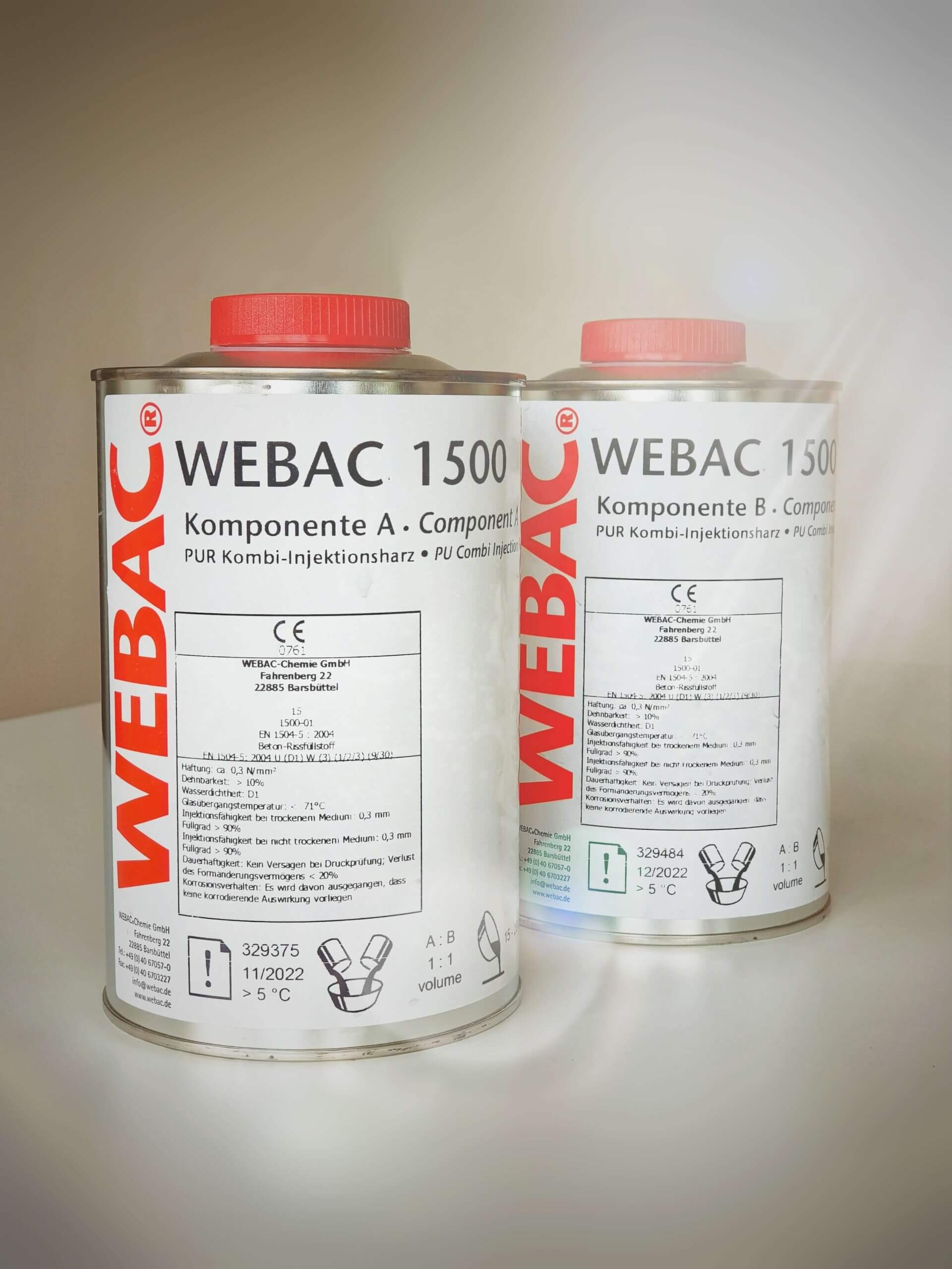 Webac 1500 tekur sig hratt hvort sem það kemur í snertingu við vatn eða ekki. Webac 1500 er þunnfljótandi og flæðir því mjög vel, sem tryggir að efnið fer vel inní allar sprungur.